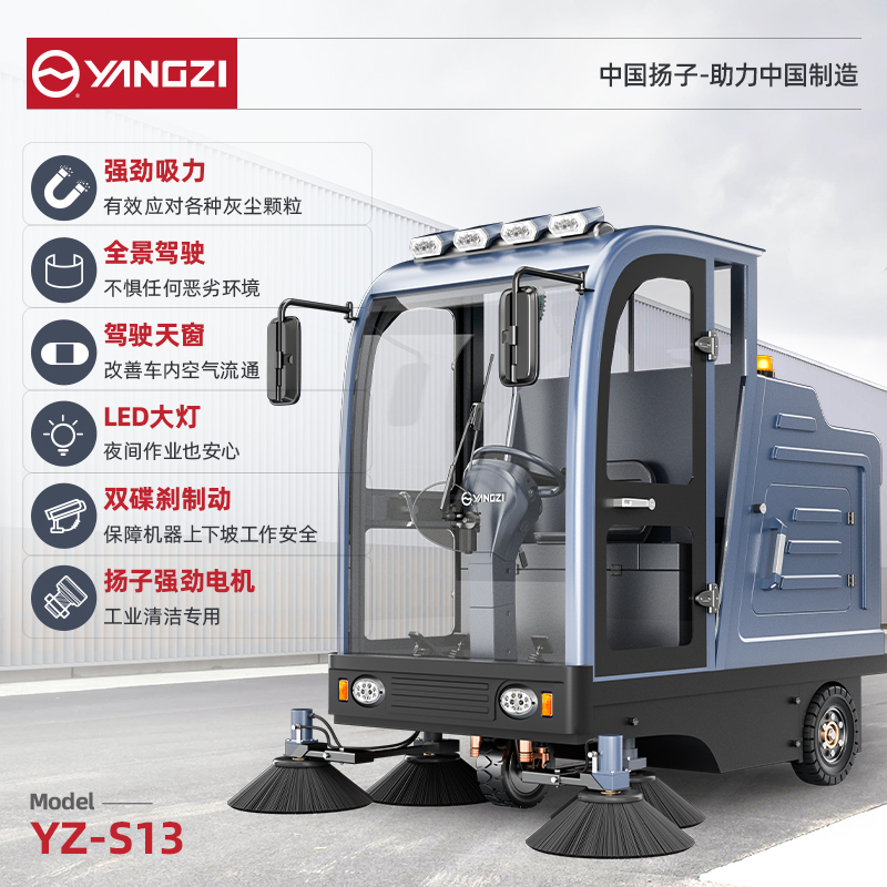 自營揚子掃地機YZ-S13 全封閉式駕駛 工廠車間小區(qū)物業(yè)車庫廣場環(huán)衛(wèi)電動清掃車