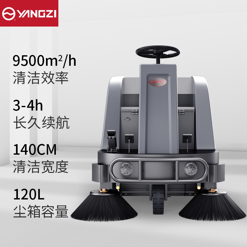 - 效率:揚(yáng)子S5駕駛式掃地機(jī)100AH鋰電款,搭載雙邊地刷設(shè)計(jì),清掃寬度可達(dá)1400mm,單機(jī)清潔效率達(dá)9500㎡/h,1名工作人員駕駛操作,5小時(shí)可完成全域48000㎡(含小區(qū)32000㎡+寫字樓16000㎡)清掃,替代15名人工,整體清潔效率較純?nèi)斯で鍜咛嵘?6%+,相較于傳統(tǒng)人工保潔人均負(fù)責(zé)5000-8000㎡的效率,大幅提升清潔覆蓋率與完成速度,無需頻繁換崗,大幅縮短清潔工期,適配物業(yè)多場(chǎng)景分散清掃需求。