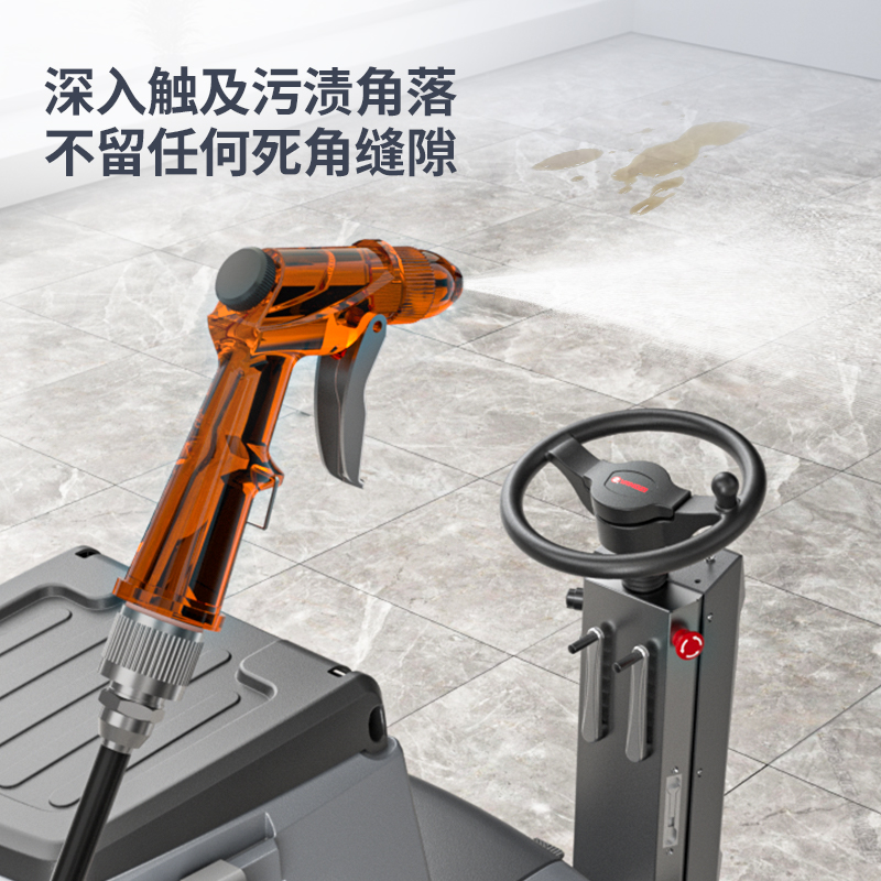 采購(gòu)背景:工廠6000㎡水泥精鋼砂地面,需駕駛款洗地機(jī),人工清潔效率低、藥粉易飛揚(yáng)。