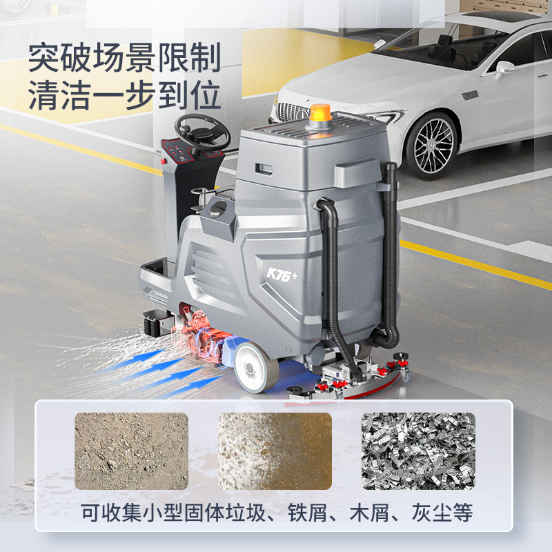 適用于車間、車庫、廣場等兼具粉塵與污漬的硬質(zhì)地面的同步清掃與清洗作業(yè)