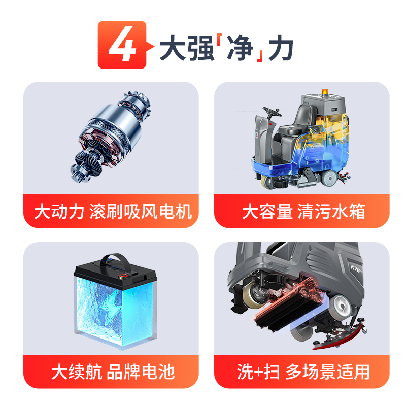 超大側(cè)方注水口,加水方便快捷;防倒吸浮球籠預(yù)警裝置,有效防止污水進(jìn)入損壞電機(jī);智能傳感系統(tǒng),滾刷放下,滾刷電機(jī)自動啟動;采用前后連通結(jié)實底盤設(shè)計,整機(jī)行駛更穩(wěn)定更耐用